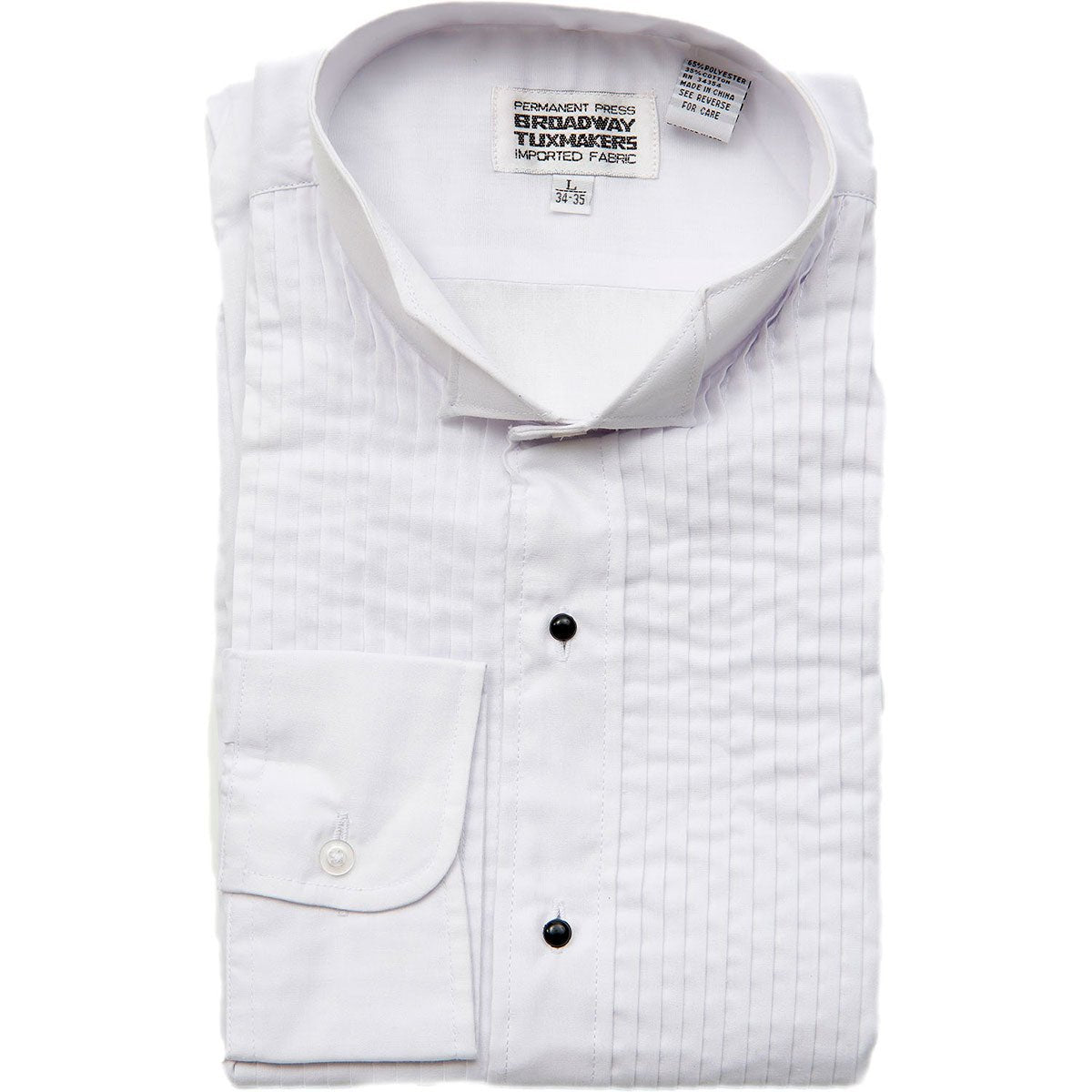 - 15 - Men's Tuxedo Shirts: White poly/cotton blend tuxedo shirts with wing collar.: 1/4" pleats (five pieces) and 1/8" pleats (ten pieces).