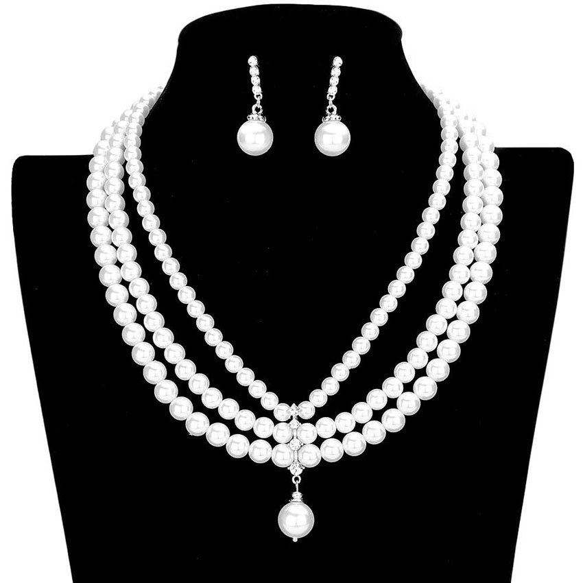 Triple Layered Pearl Necklace. Beautifully crafted design adds a gorgeous glow to any outfit. Get ready with these Pearl Necklace. Perfect for adding just the right amount of shimmer & shine and a touch of class to special events. Suitable for wear Party, Wedding, Date Night or any special events. Perfect Birthday Gift, Anniversary Gift, Thank you Gift or any special occasion.
