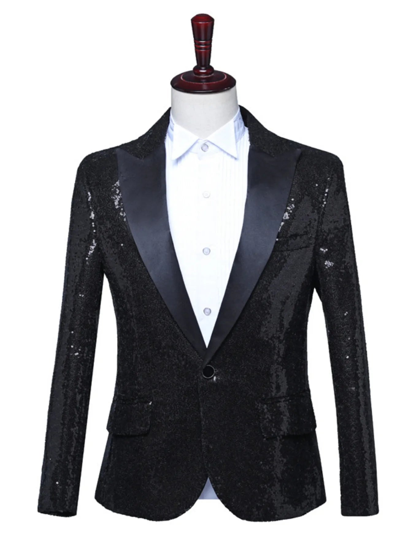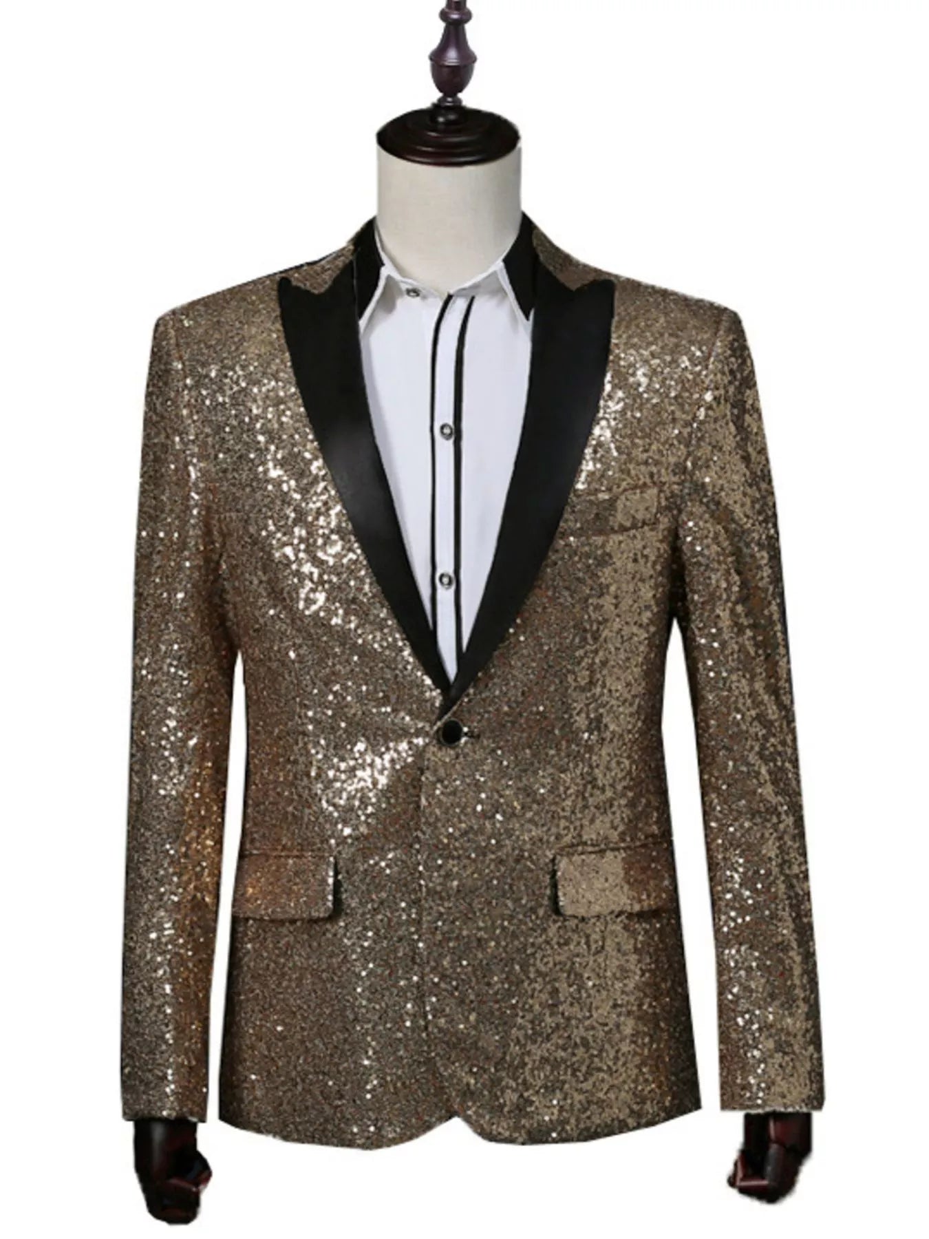 Turn heads at any event with this men’s sequin blazer, designed for maximum shine and standout style. Some feature a sleek satin shawl lapel, others have a peak collar, but all have a modern slim fit with a single-button front, two flap pockets and one chest pocket. This jacket adds instant glamour to any outfit. Perfect for parties, performances, weddings, proms, or stage events.
