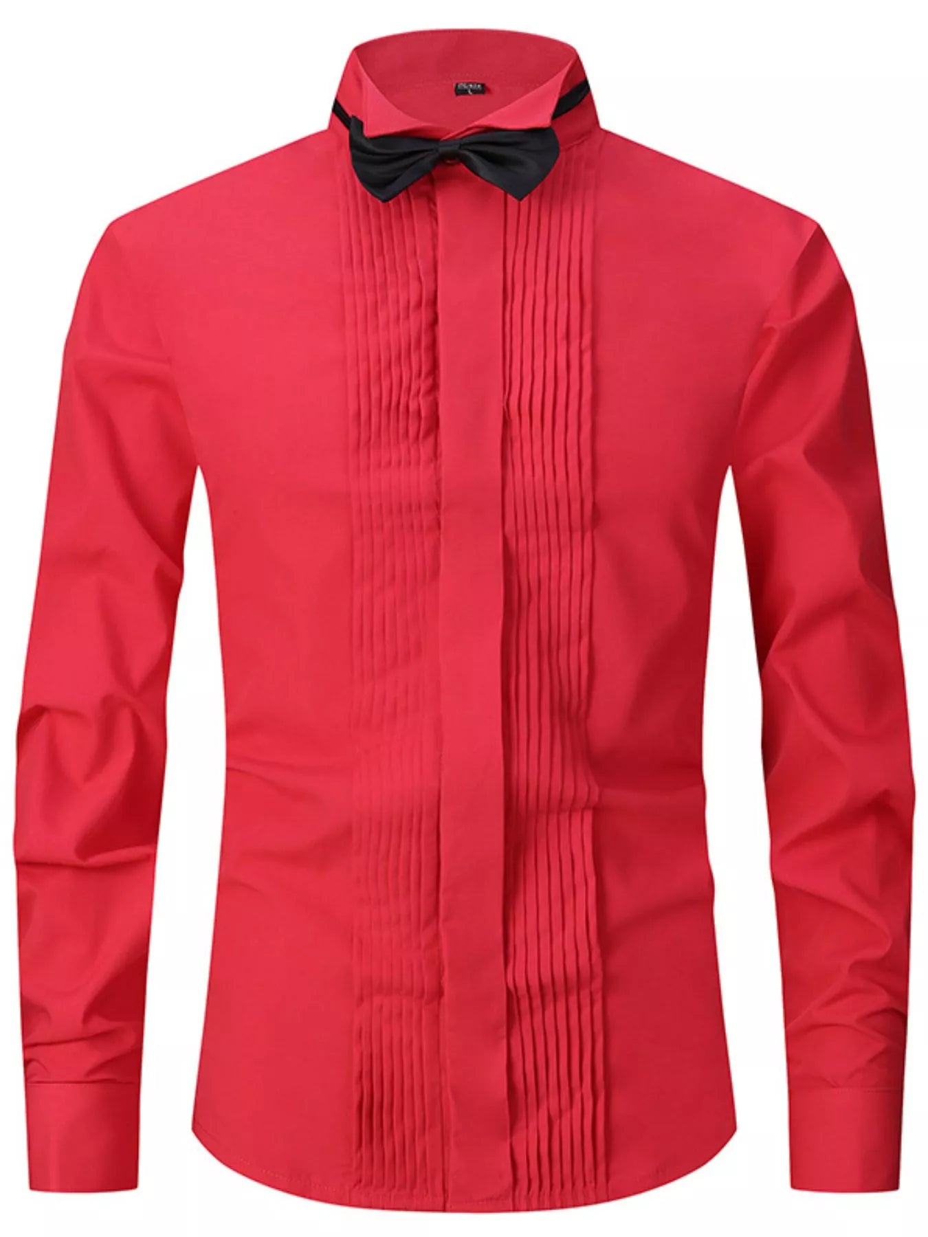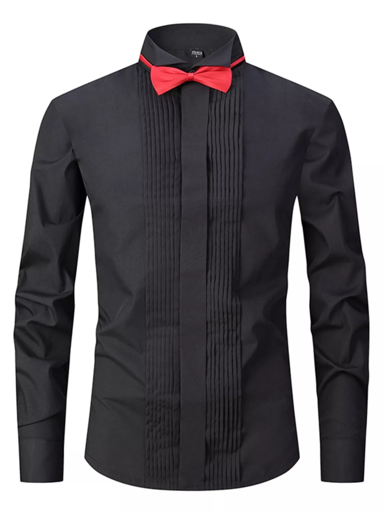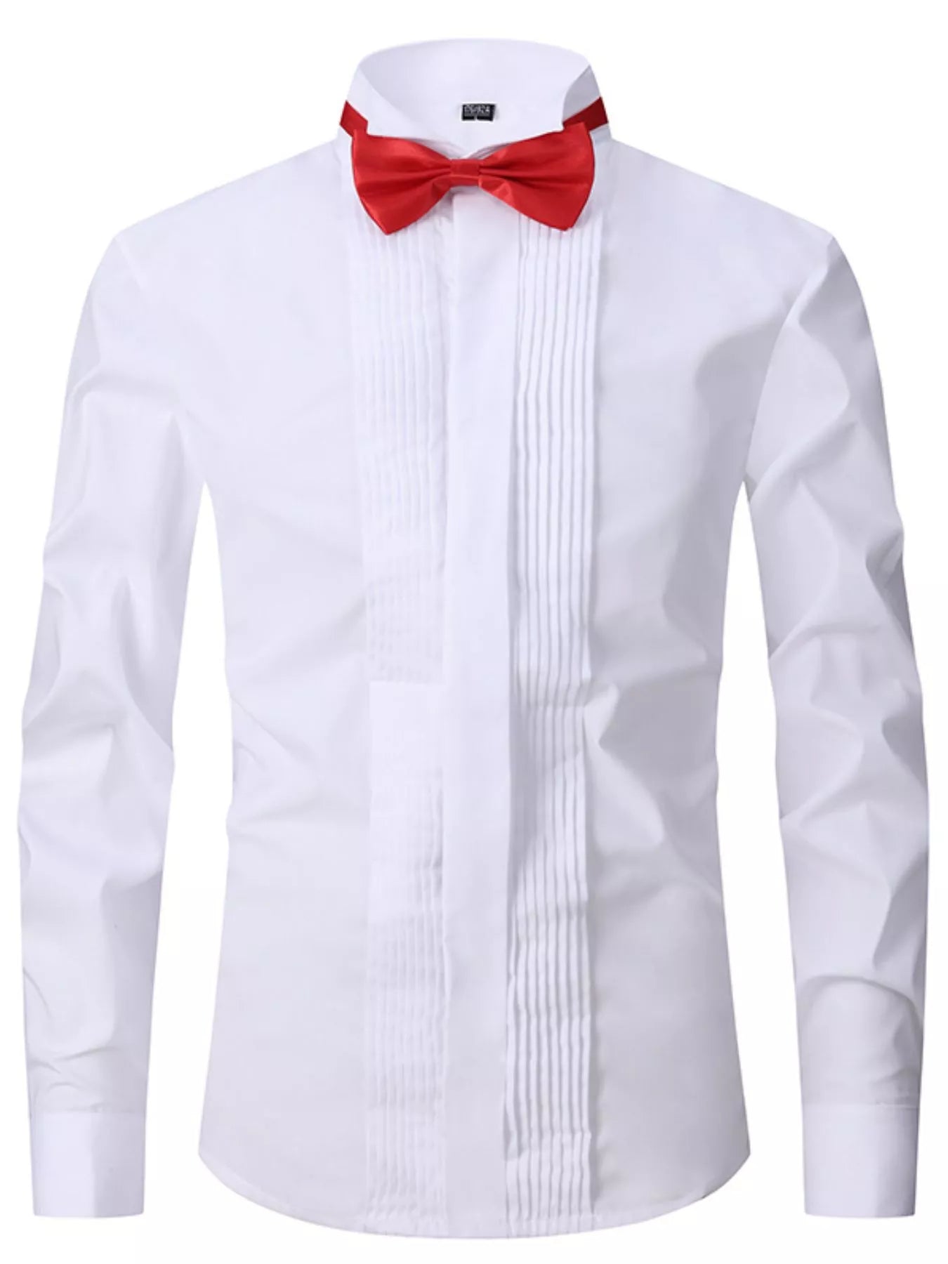 Men's Full Size Long Sleeve Shirt with Bow Tie Plus Size